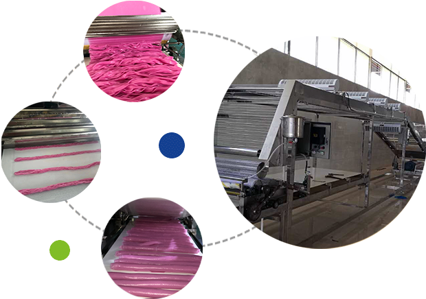 大型河粉機(jī)的工作主要是將磨好了的米漿自動(dòng)輸入大型河粉機(jī),通過大型河粉機(jī)蒸箱里面的蒸氣把它蒸熟成形,變成河粉···
